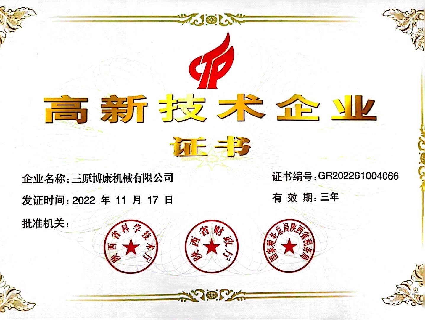 高新技術(shù)企業(yè)證書